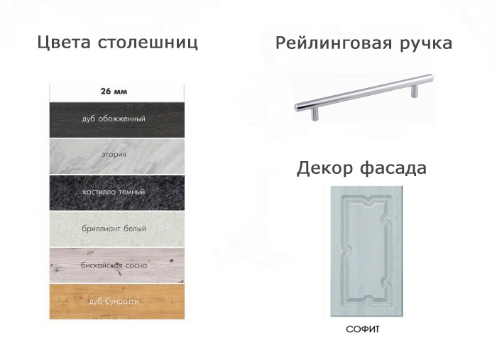 Материал фасада и корпуса: ЛДСП 16 мм. Ширина кухни 100 см.