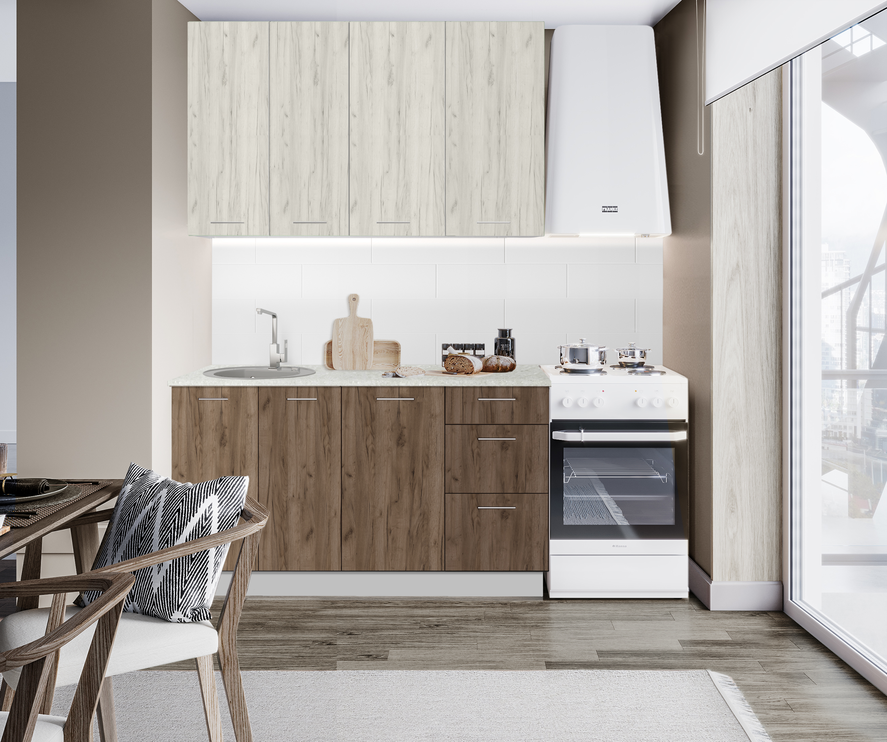 Линейная кухня «Эльза» 1.4 м в расцветке дуб крафт белый/дуб крафт табачный также доступна в других размерах: