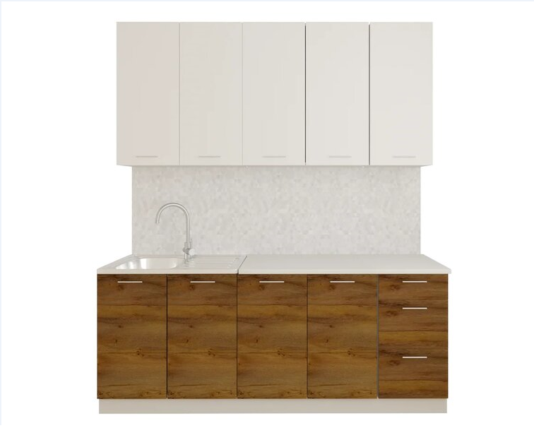 Прямая кухня «Эльза» ДСП 2,0 м, белый снег-таксония