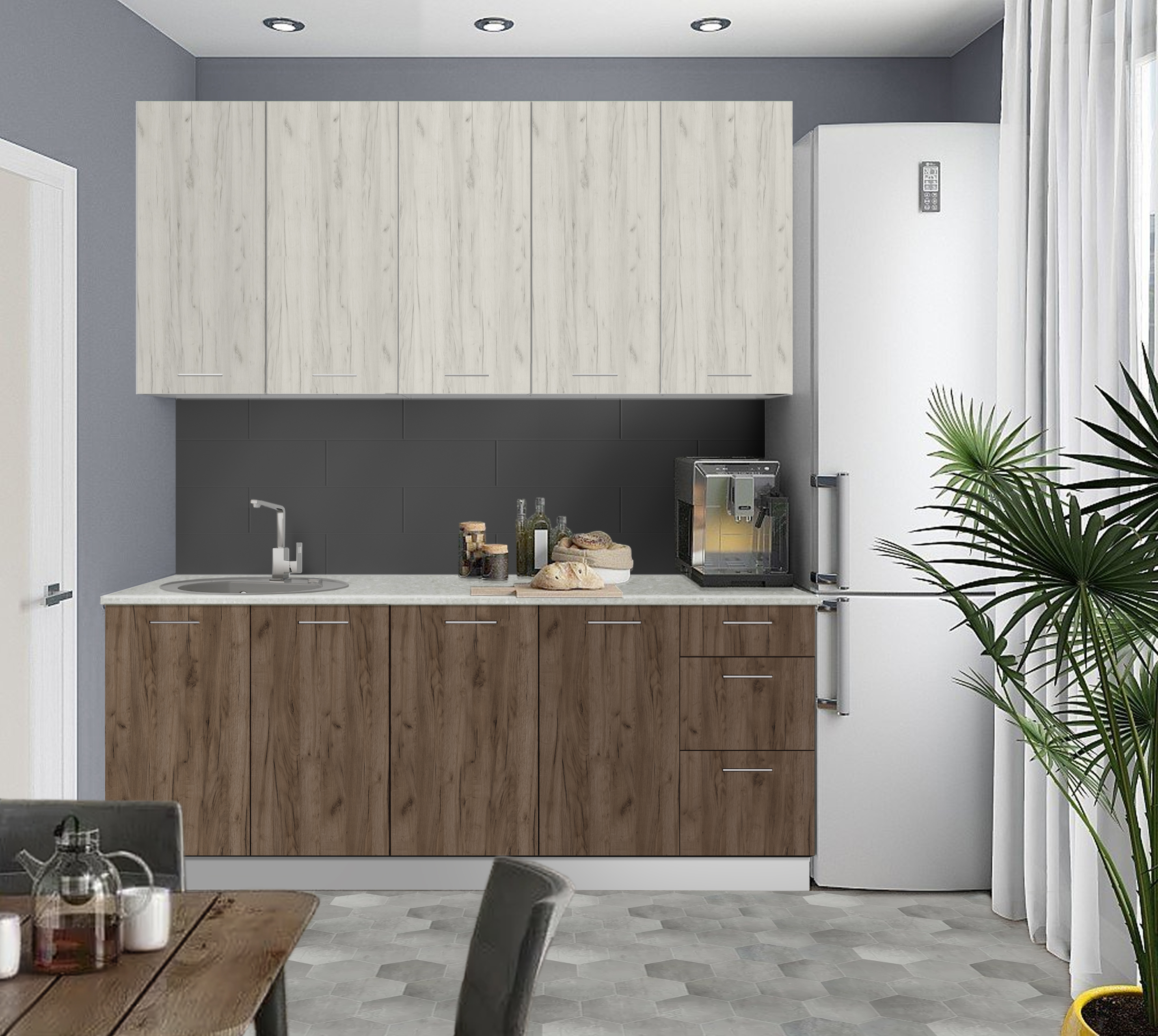 Линейная кухня «Эльза» 2.0 м в расцветке дуб крафт белый/дуб крафт табачный также доступна в других размерах: