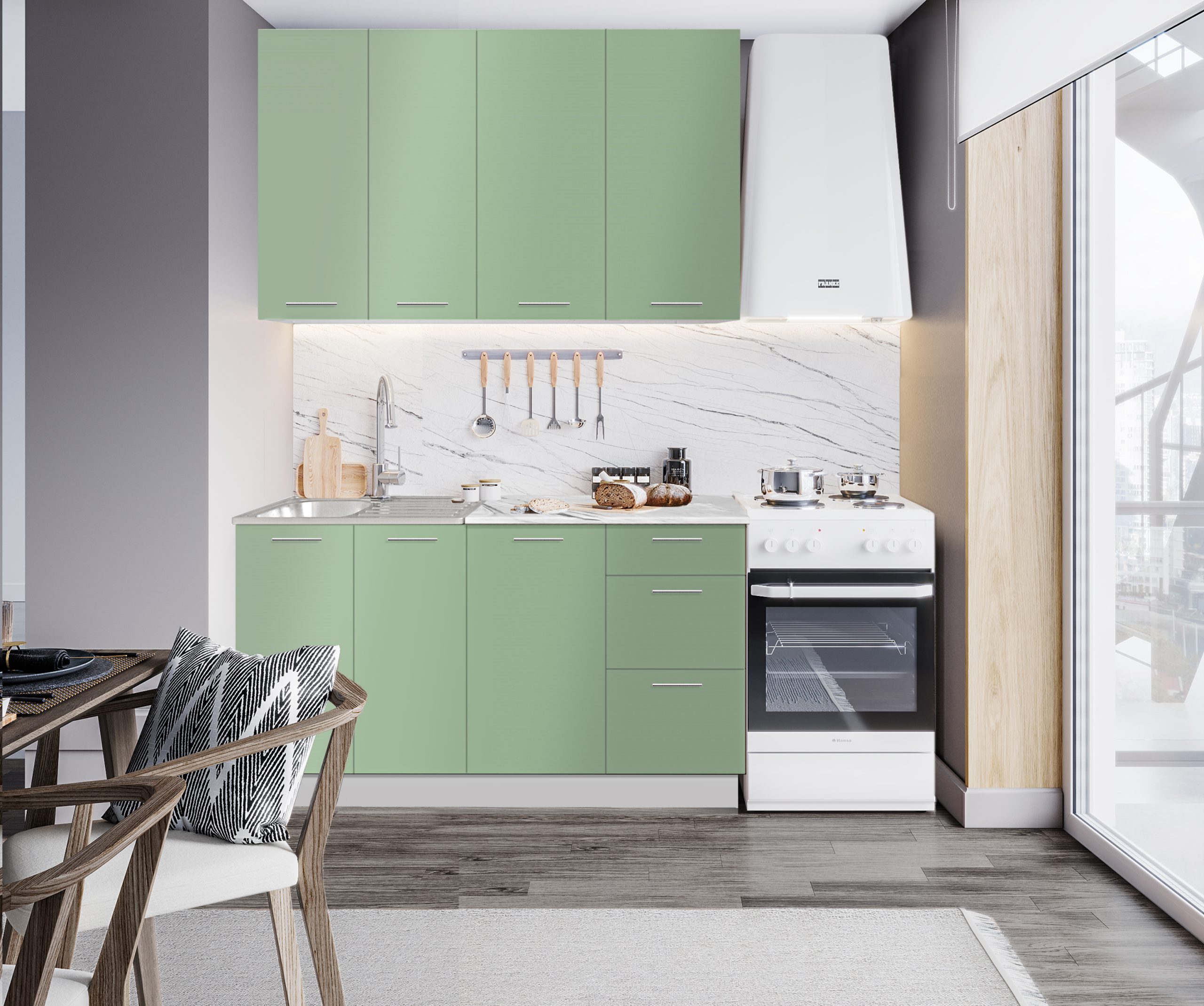 Прямая кухня «Эльза» МДФ 1.4 м, олива грин