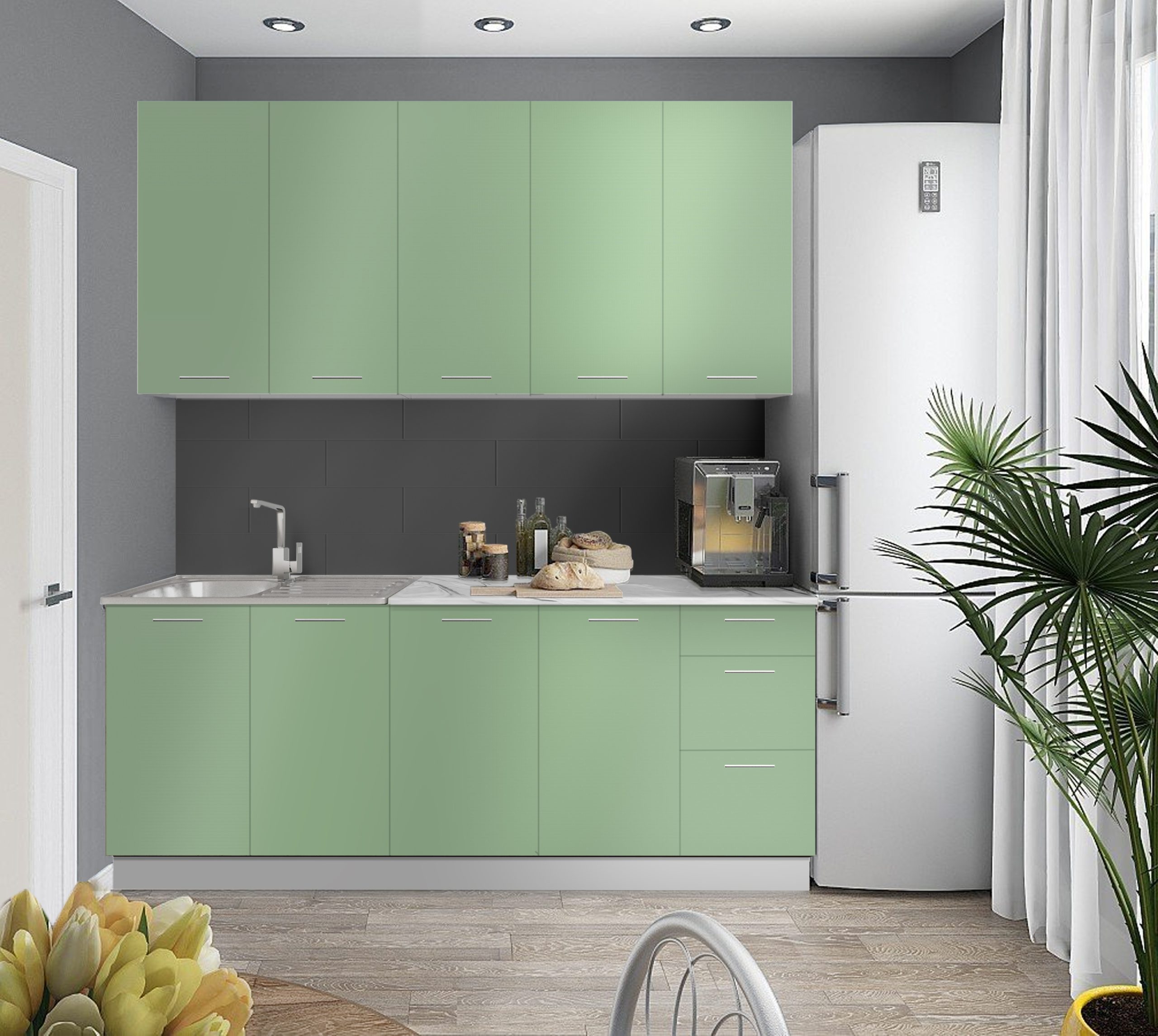 Линейная кухня «Эльза» 2.0 м в расцветке олива грин также доступна в других размерах:
