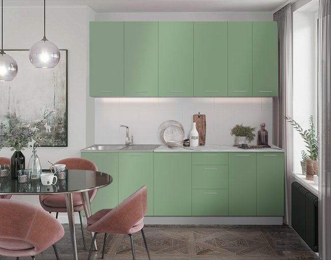 Прямая кухня «Эльза» МДФ 2.2 м, олива грин