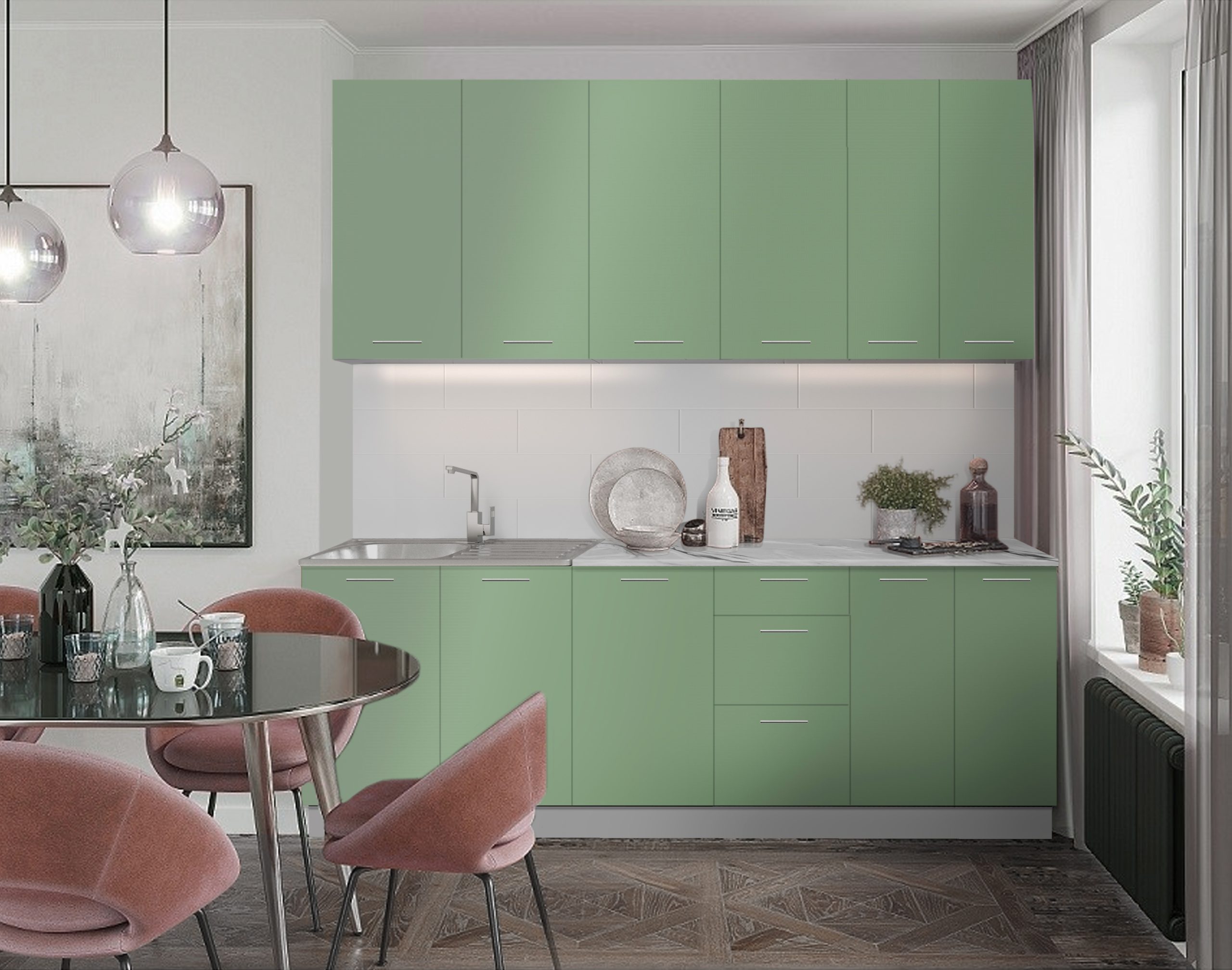 Линейная кухня «Эльза» 2.2 м в расцветке олива грин также доступна в других размерах: