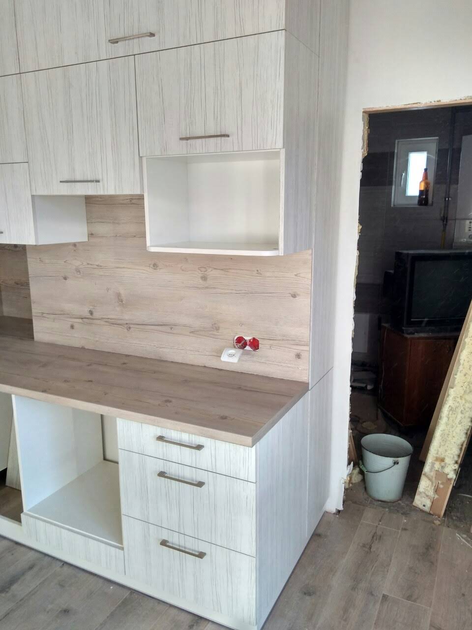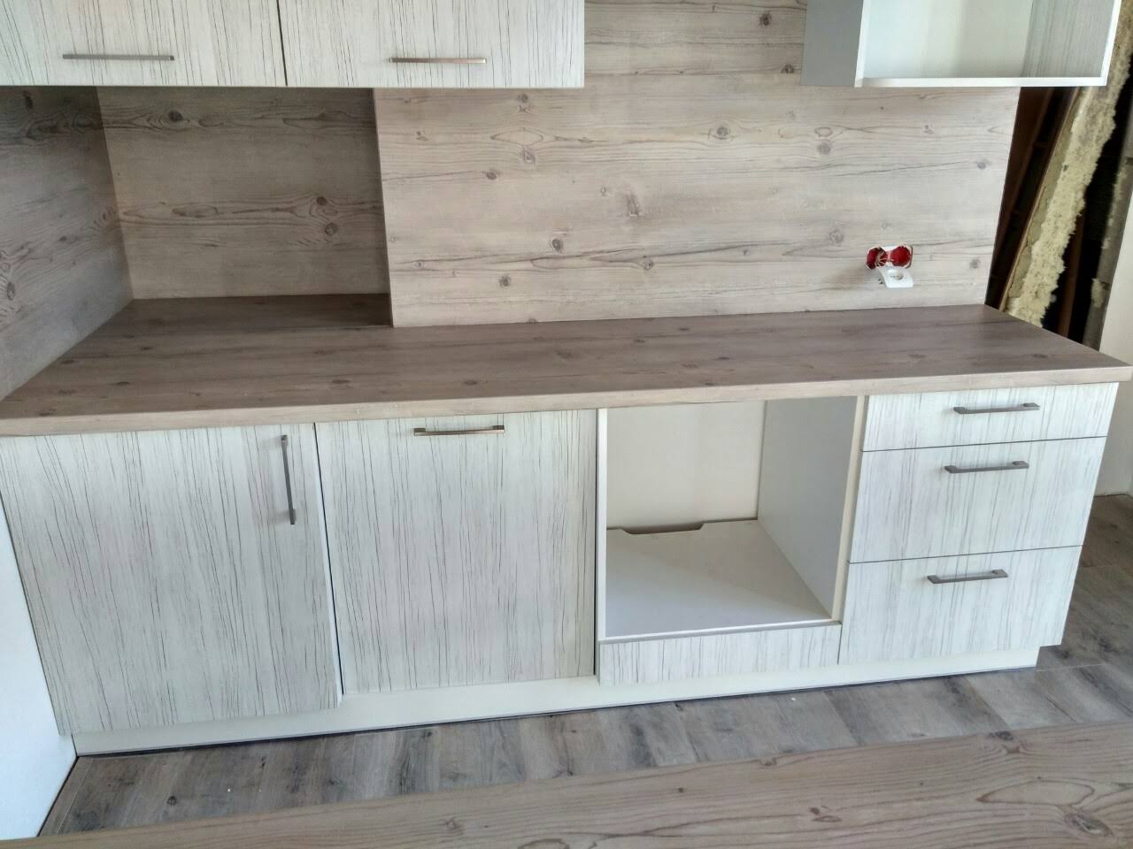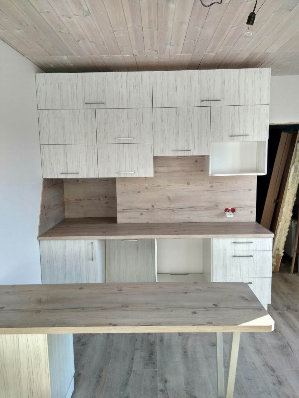 Современный кухонный гарнитур из ДСП в скандинавском стиле.