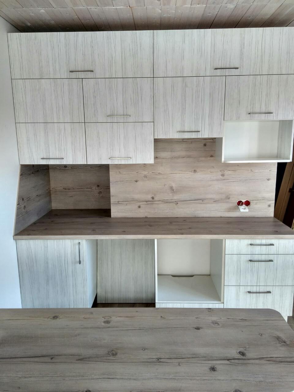 Цвет: низ венге, верх белый. Ниши для техники, скинали с фотопечатью.