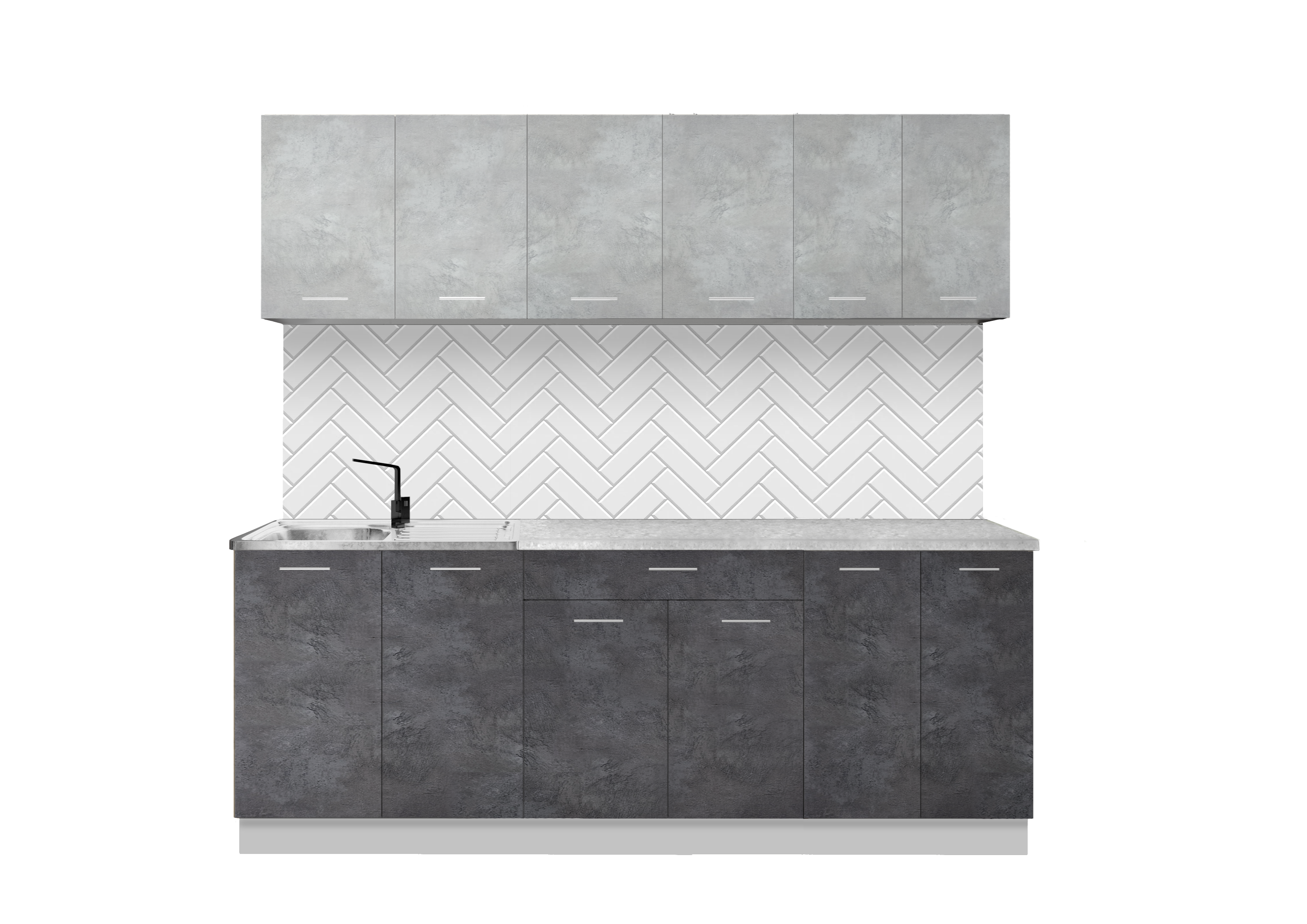 Прямая кухня «Эльза СН-114» МДФ 2.4 м, бетон белый/бетон графит