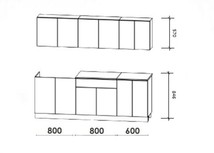 Длина кухни: 2200 мм.