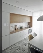 Современная кухня в скандинавском стиле. Светлые фасады из ДСП.