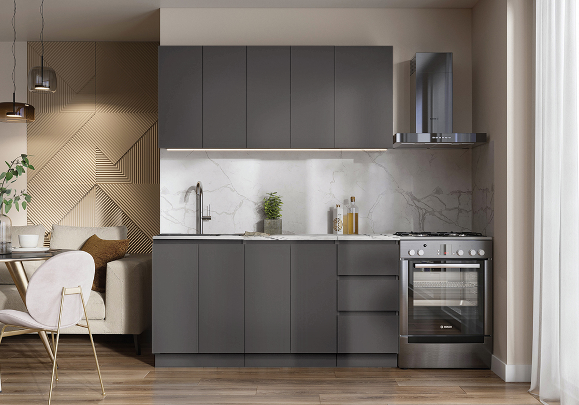 Линейная кухня «Мэри» 1.6/3 м в расцветке серый также доступна в других размерах: