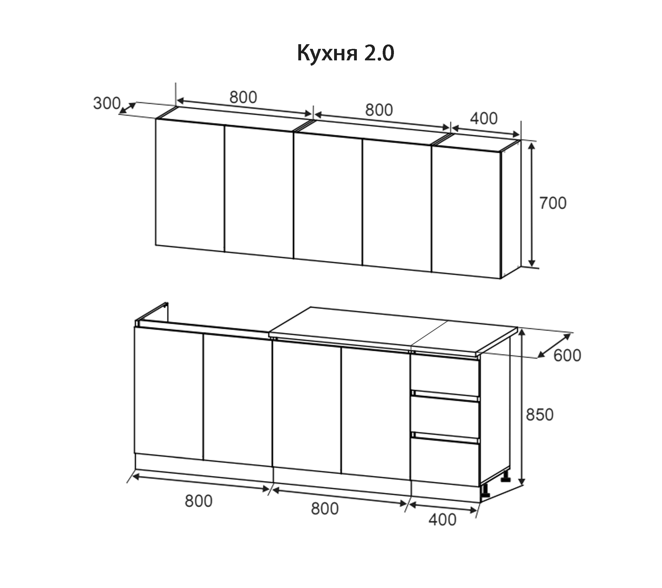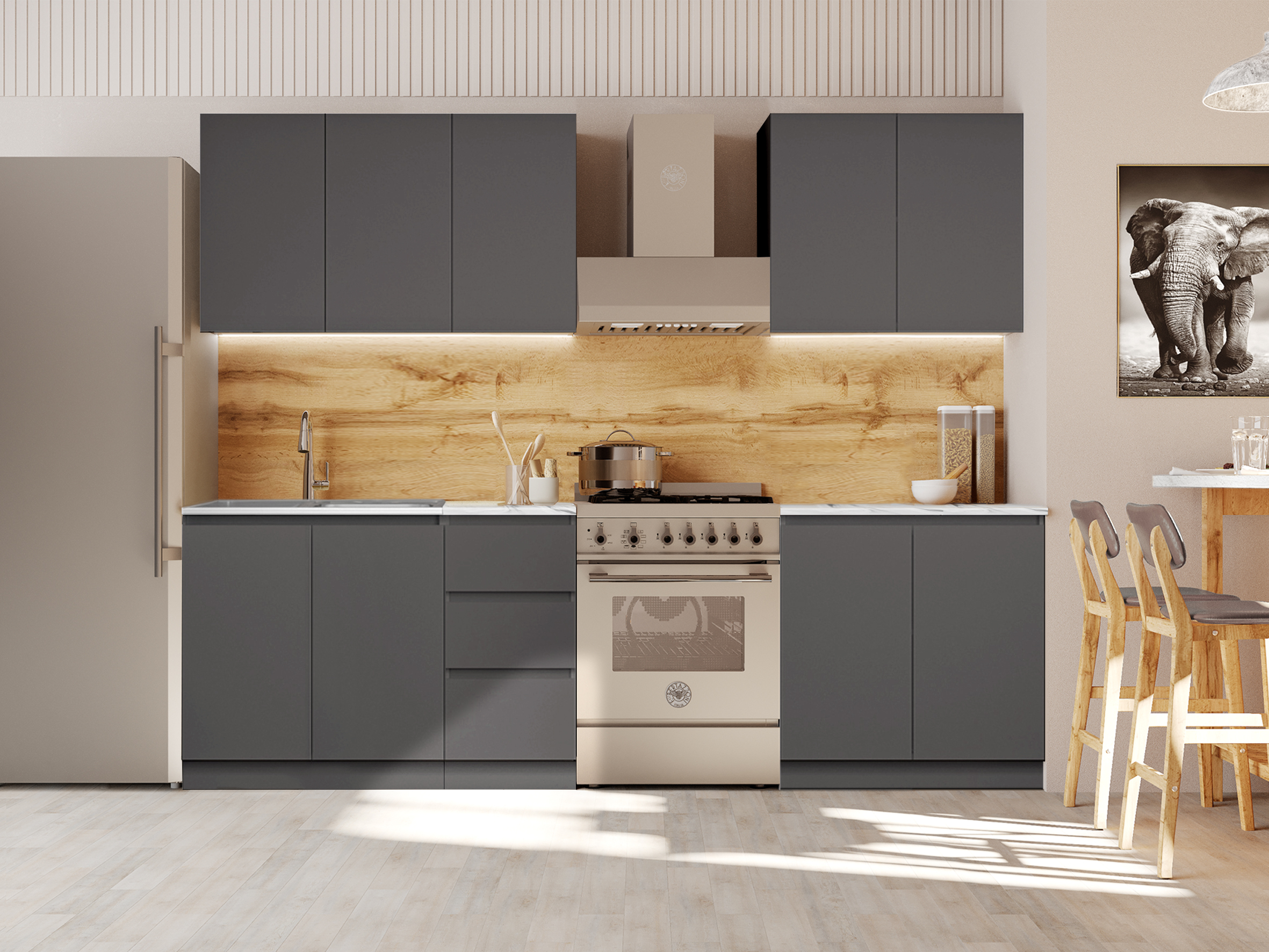 Линейная кухня «Мэри» 2.0 м в расцветке серый также доступна в других размерах: