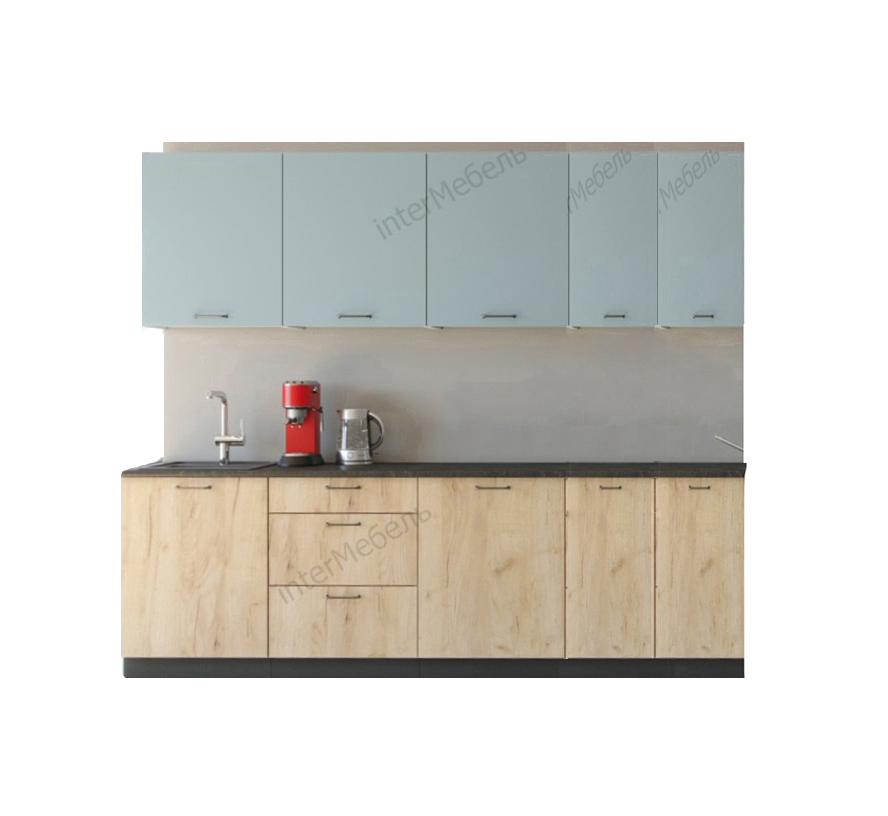 Линейная кухня «Mix-35» 2,0 м, белый-сумеречный голубой