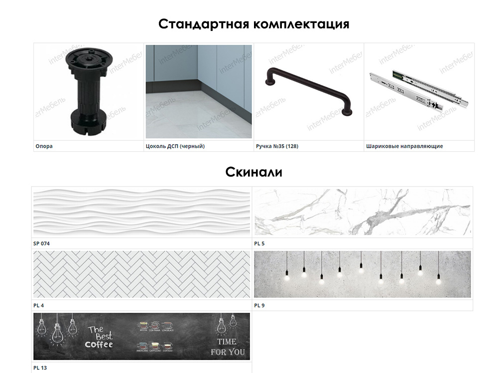 Внимание! Стоимость готового гарнитура указана без учета столешницы. Мойка и сушильная арматура также приобретаются отдельно.