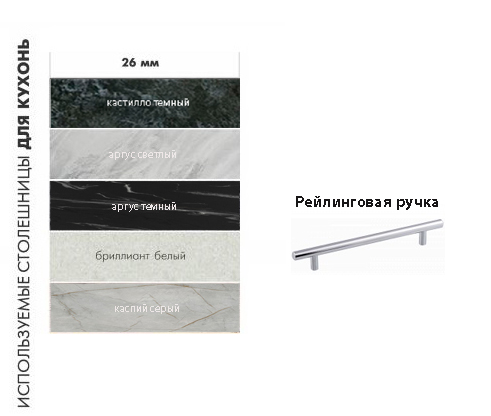 Цвет столешницы на выбор: кастилло темный; бриллиант белый; каспий серый; аргуст темный; аргус светлый.
