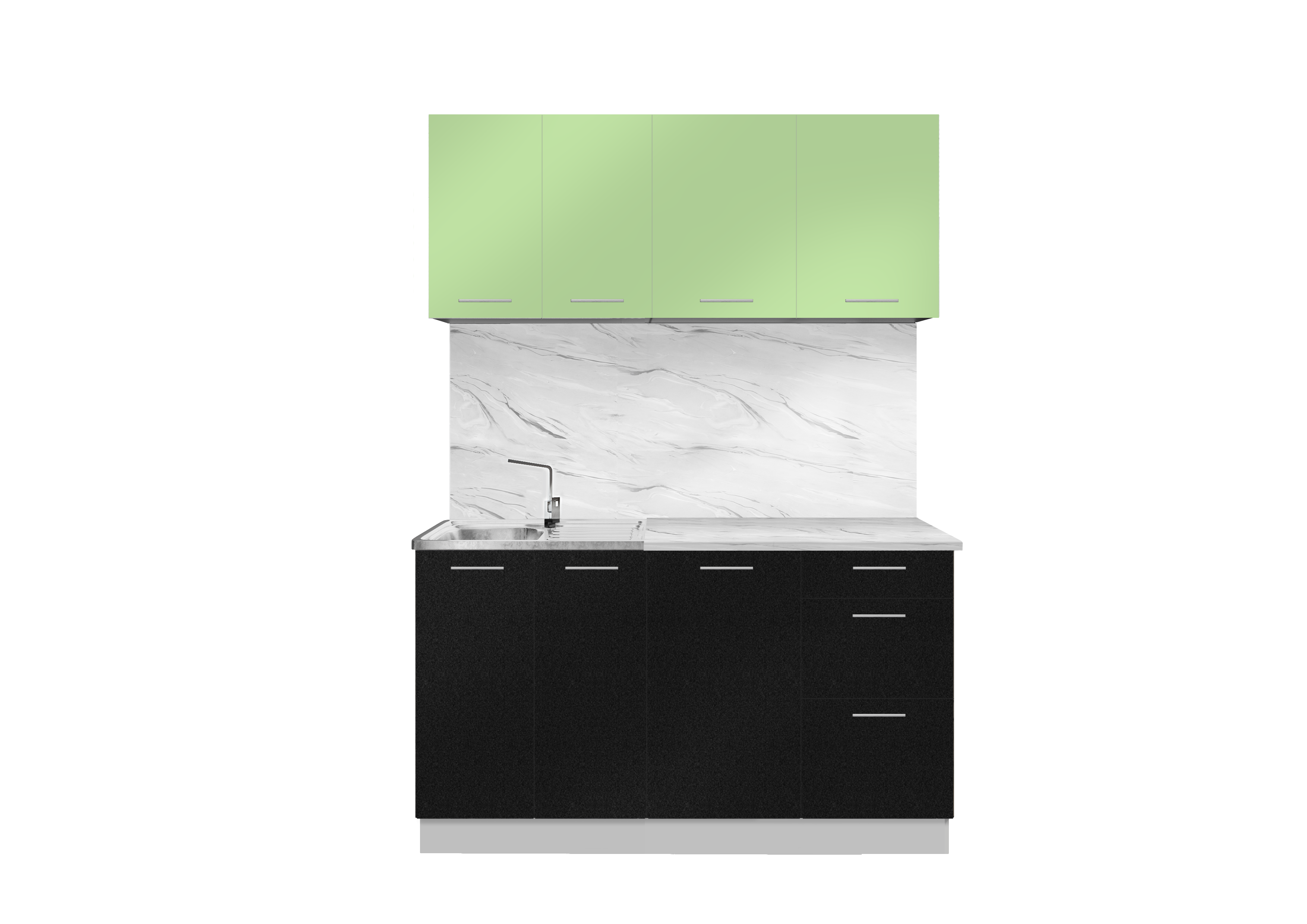 Линейная кухня «Оля» 1.4 м в расцветке зеленое яблоко/черный мрамор также доступна в других размерах: