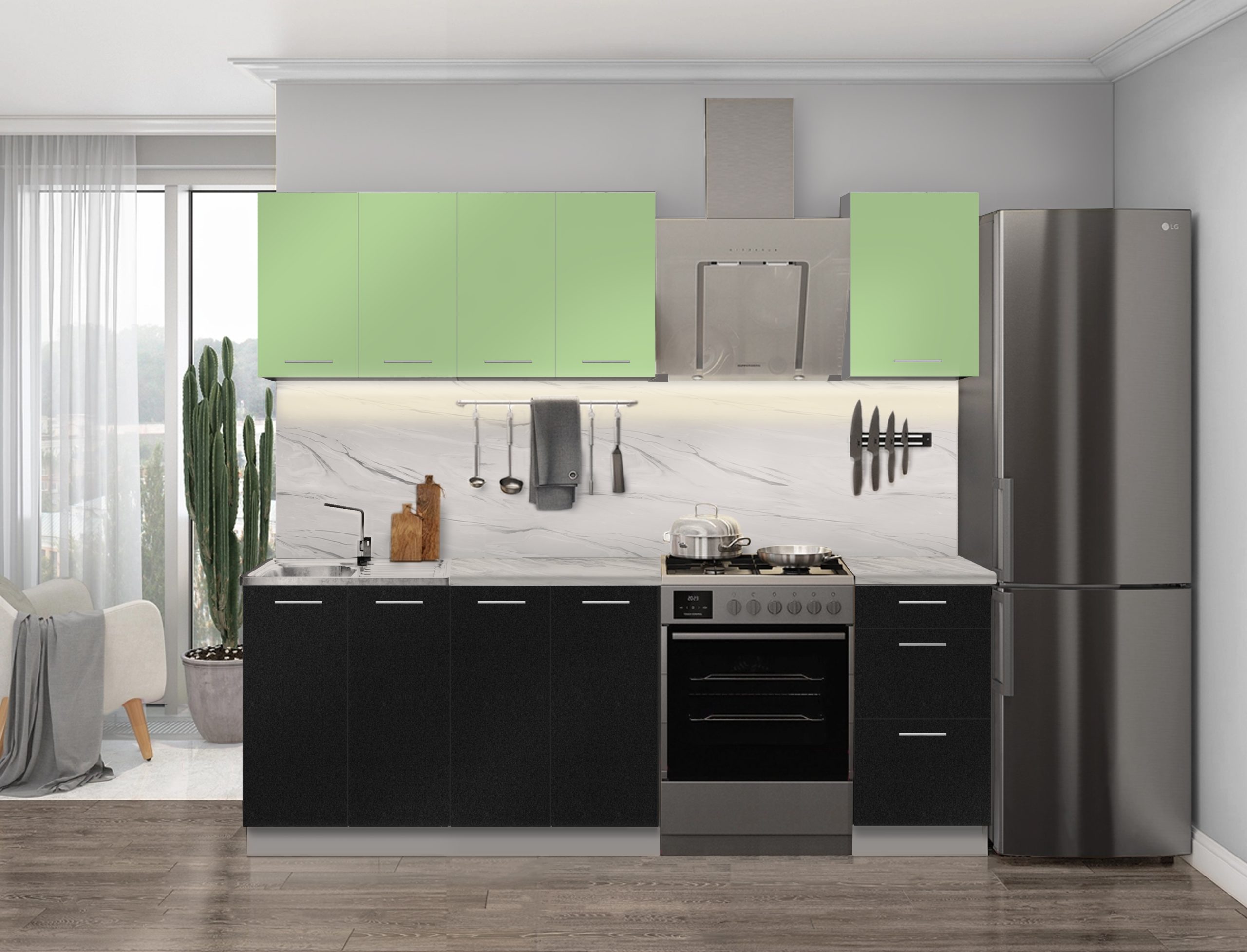 Прямая кухня «Оля» МДФ 1.6/3 м, зеленое яблоко/черный жемчуг