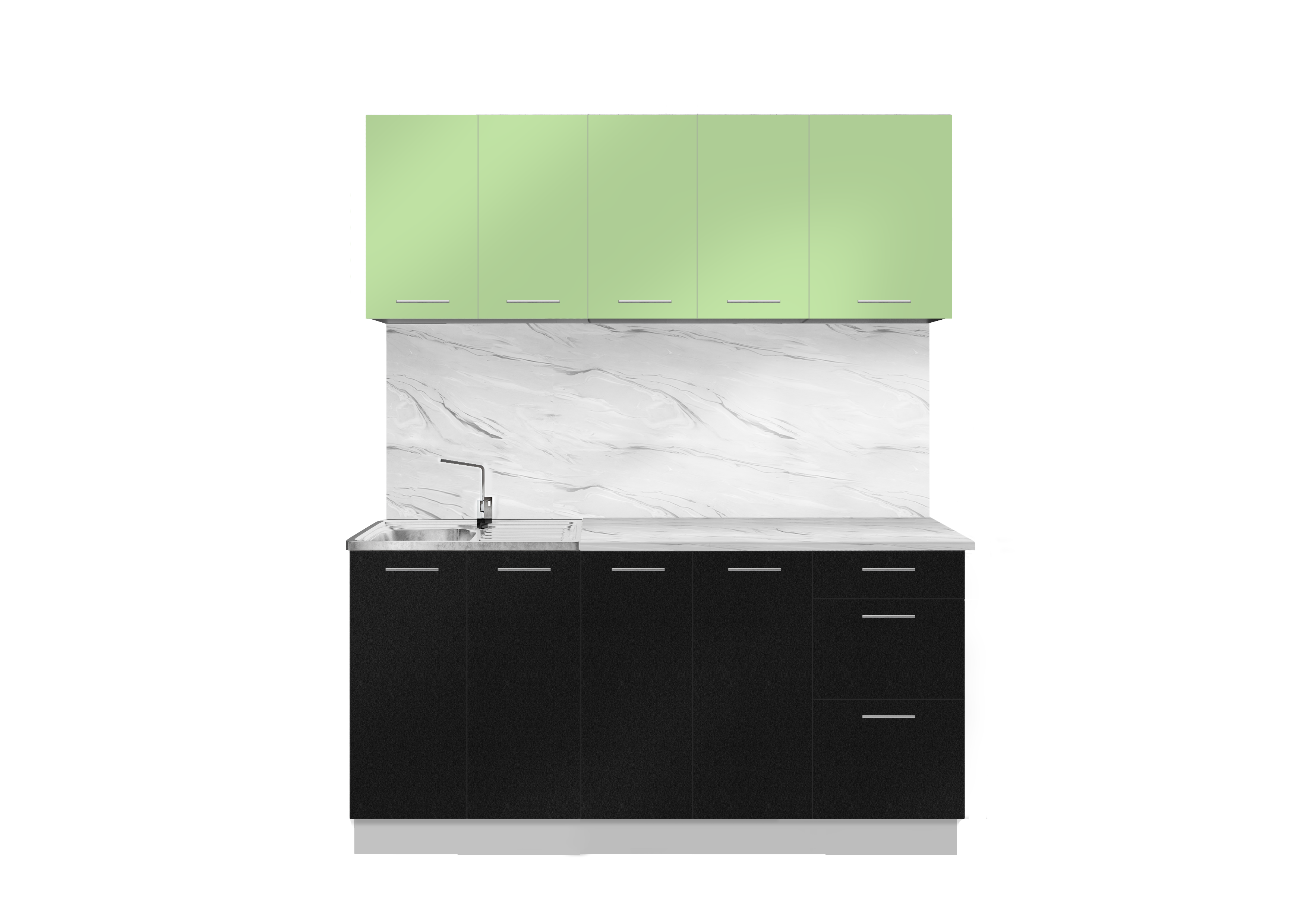 Линейная кухня «Оля» 1.6/3 м в расцветке зеленое яблоко/черный мрамор также доступна в других размерах: