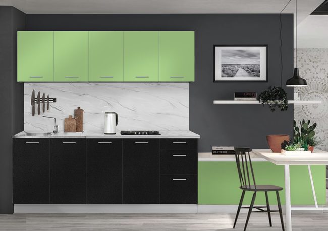 Прямая кухня «Оля» МДФ 2.0 м, зеленое яблоко/черный жемчуг