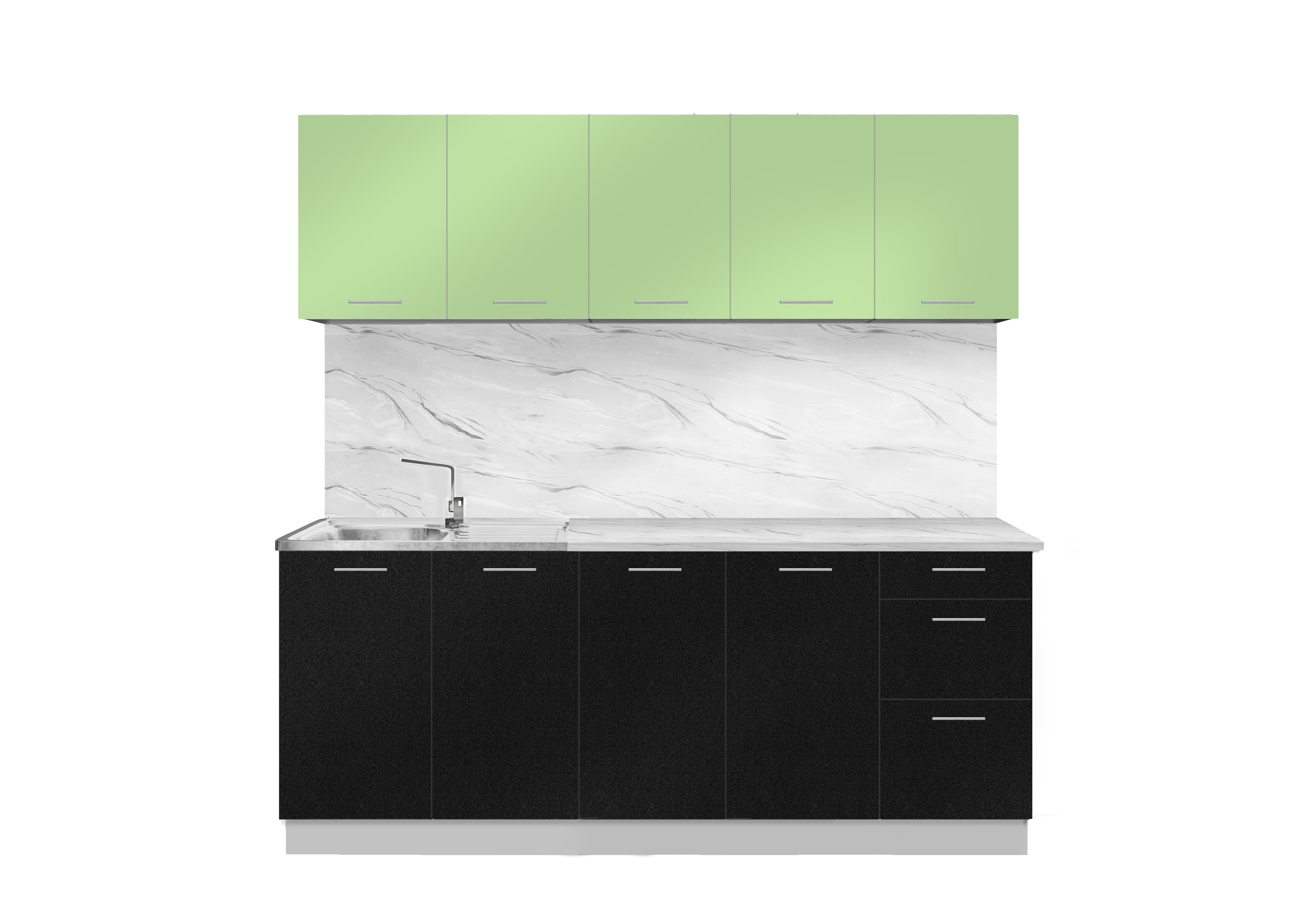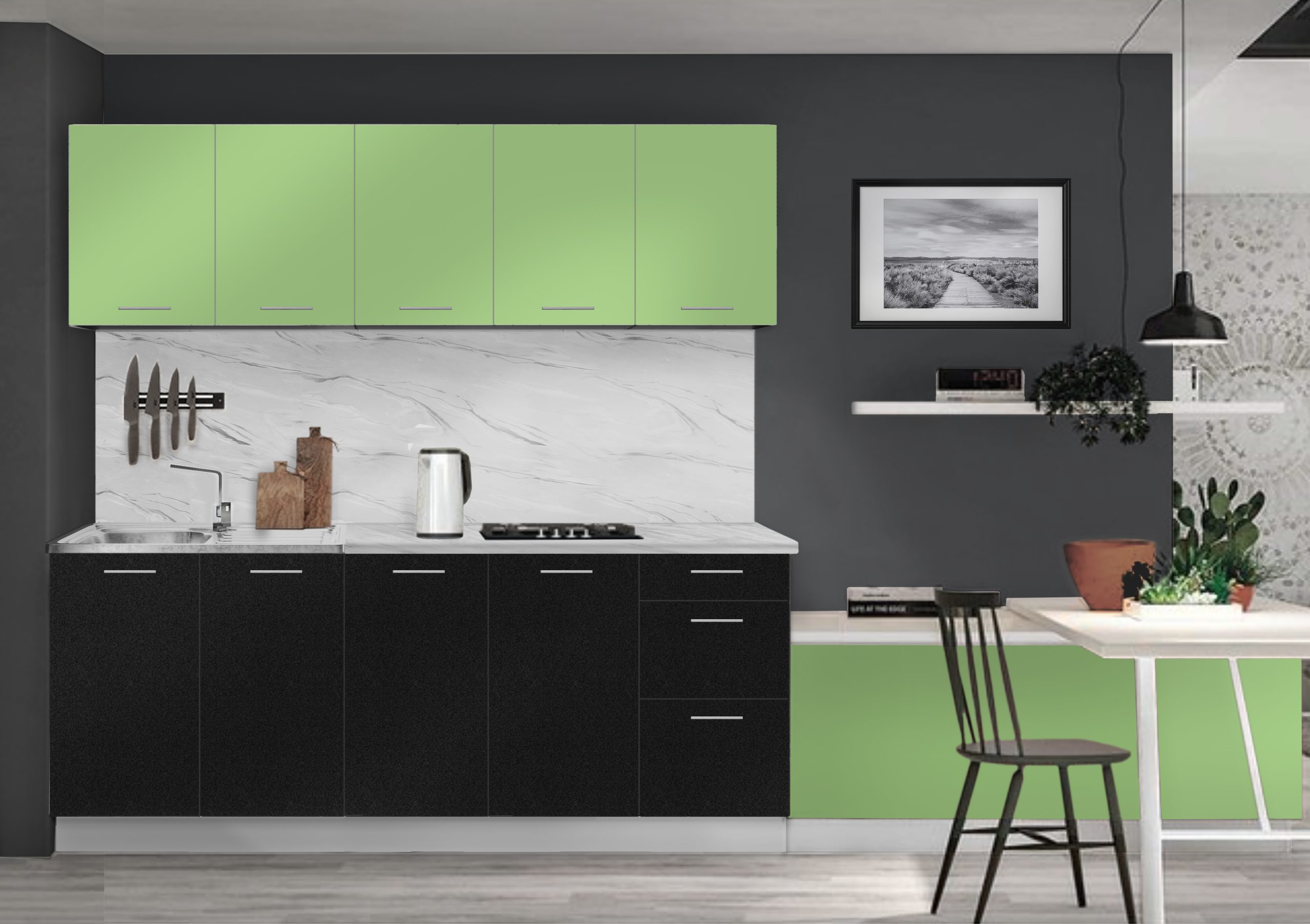 Линейная кухня «Оля» 2.0 м в расцветке зеленое яблоко/черный мрамор также доступна в других размерах: