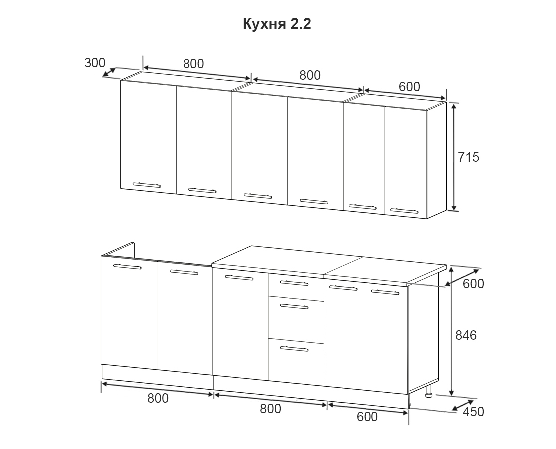 Длина кухни: 2.2: 80- мойка +80 (40 полка/40 ящики)+60 рапашной