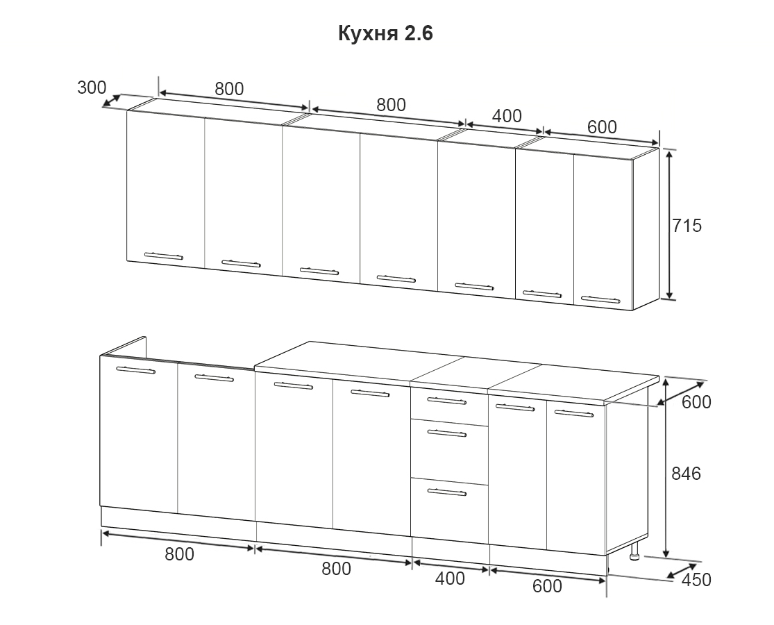 Прямая кухня из МДФ не требует особого ухода и специальных моющих средств. Может служить до 20 лет! Гарнитур состоит из отдельностоящих модулей: корпуса под мойку 80 см, распашного модуля с полкой внутри, модуля с тремя выдвижными ящиками и распашного шкафа с полкой шириной 60 см.