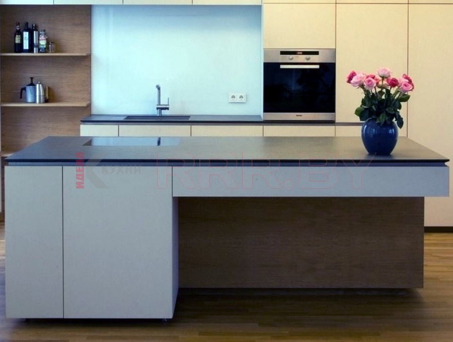 код 103439Исполнена в белом матовом цвете с темной столешницей. Фасады: крашенный МДФ.