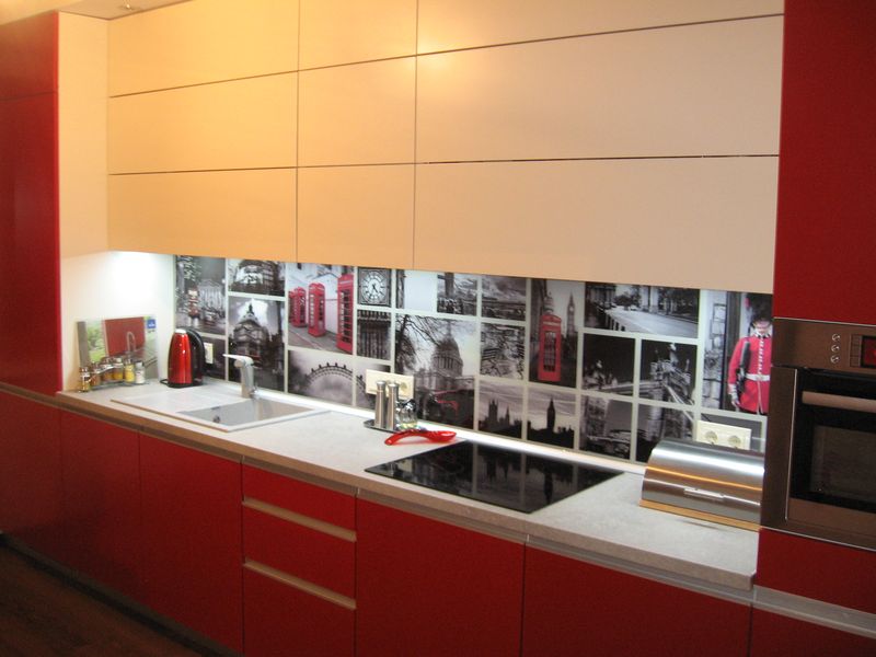 код 103229Ниша для СВЧ печи. Фасады красного и белого цвета.