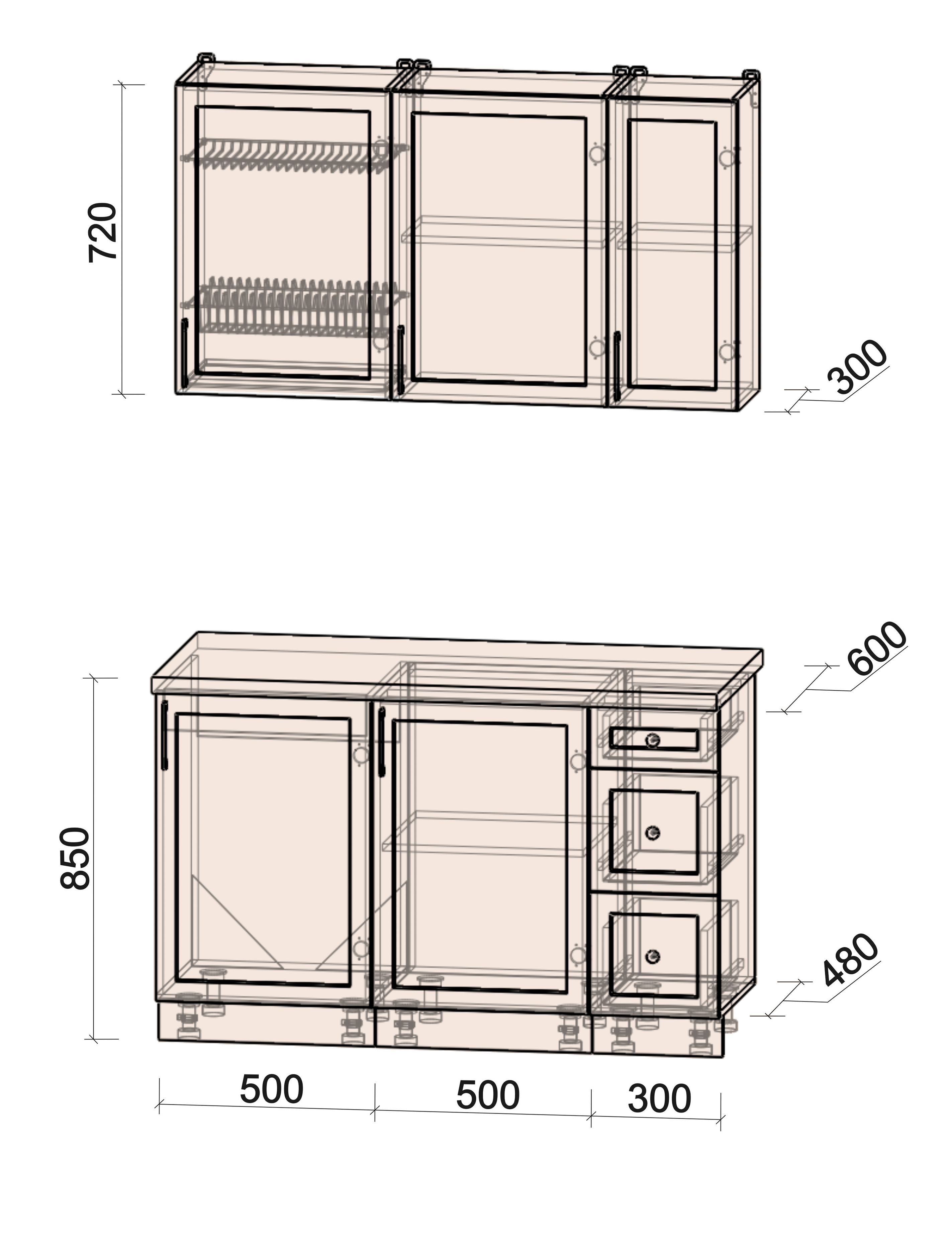 Люкс является модульной коллекцией. Фасад и корпус поставляются в отдельных упаковках.