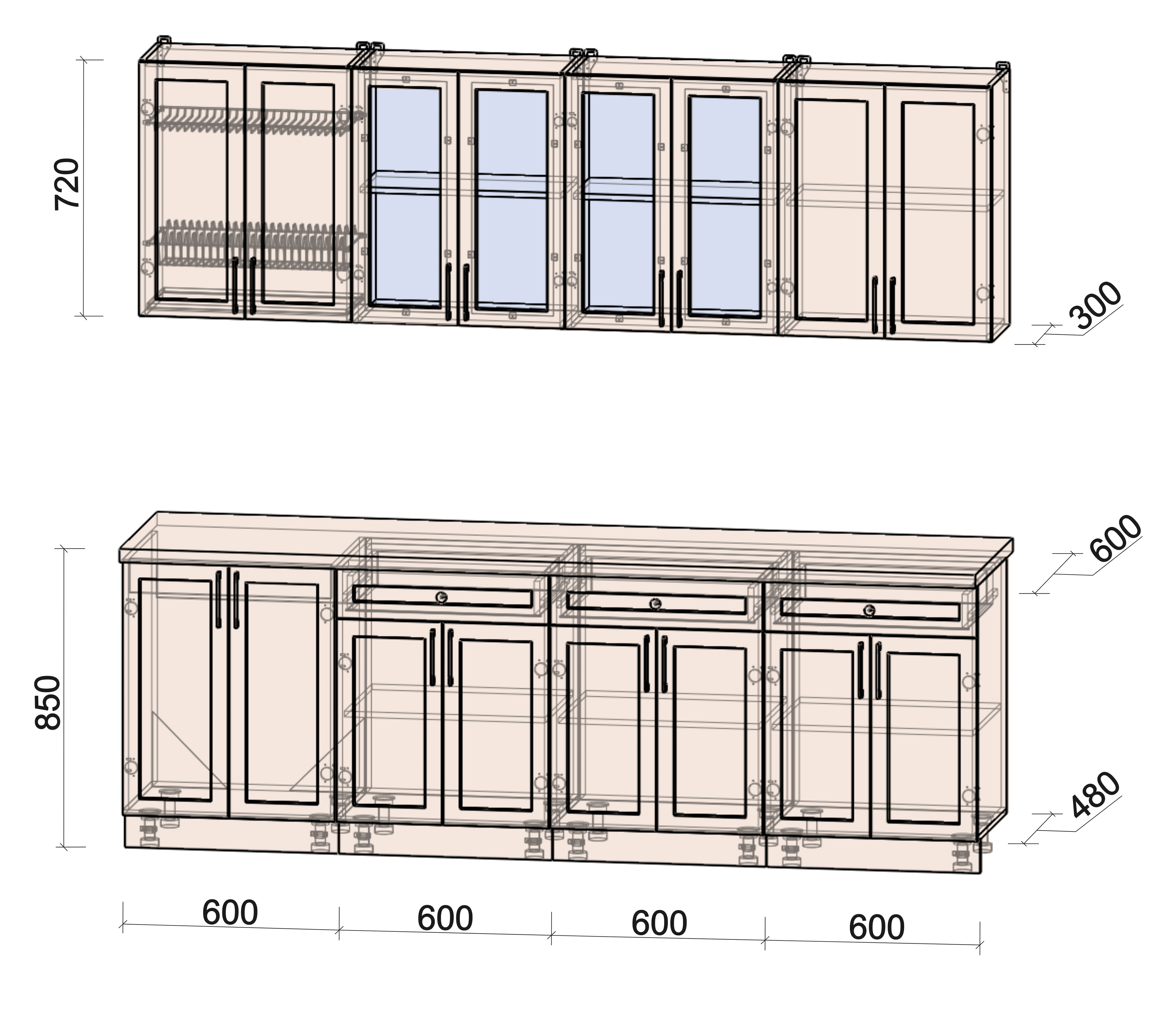 Цоколь: отдельный на каждый шкафчик.