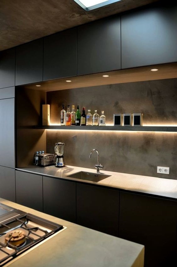 Верхние фасады со стеклом. Ширина кухни 250 см.