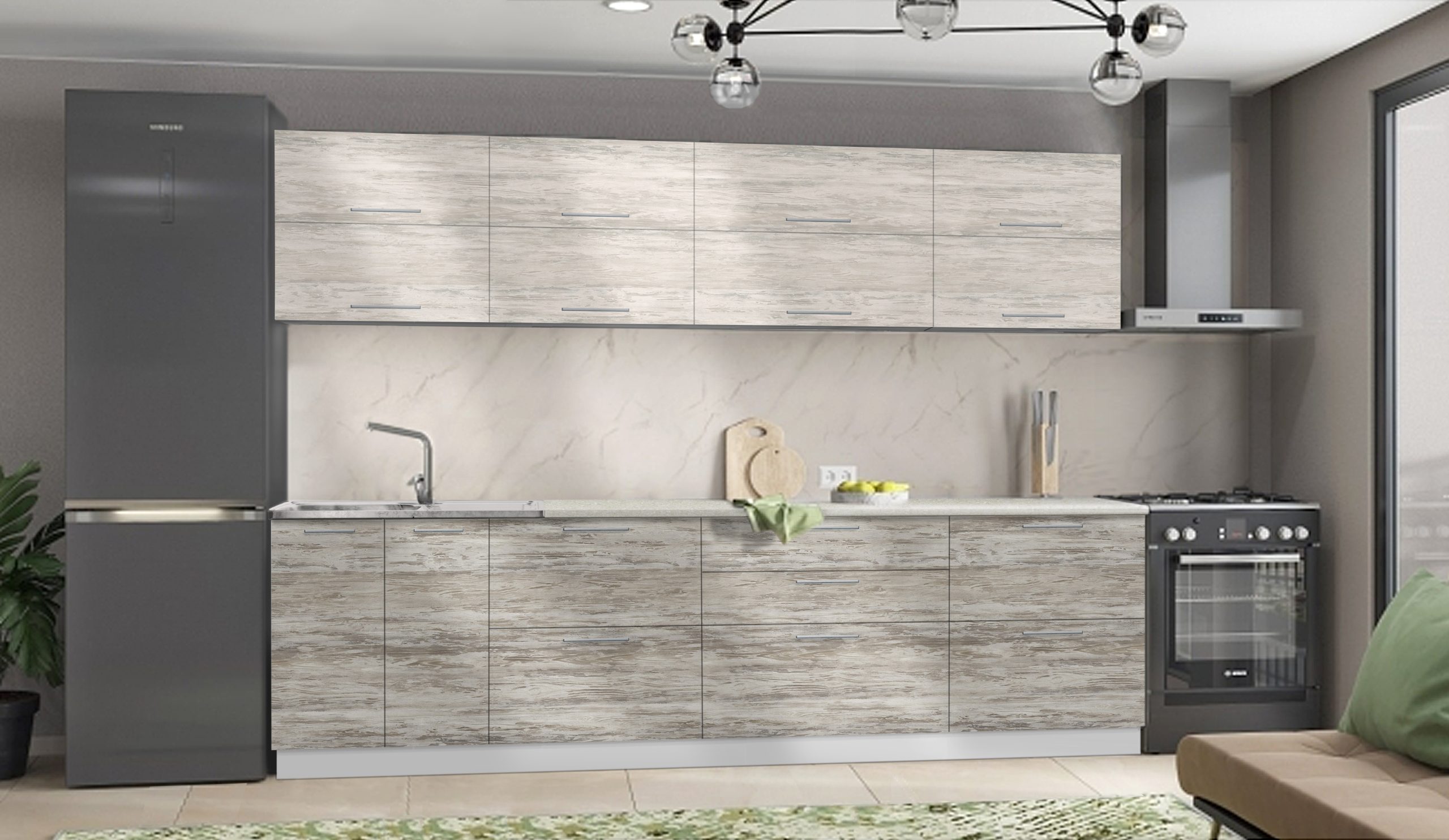 Прямая модульная кухня «Mix Top» 3.0 м, белый премиум-дуб каньон