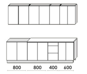 Общая ширина кухни: 2800 мм.