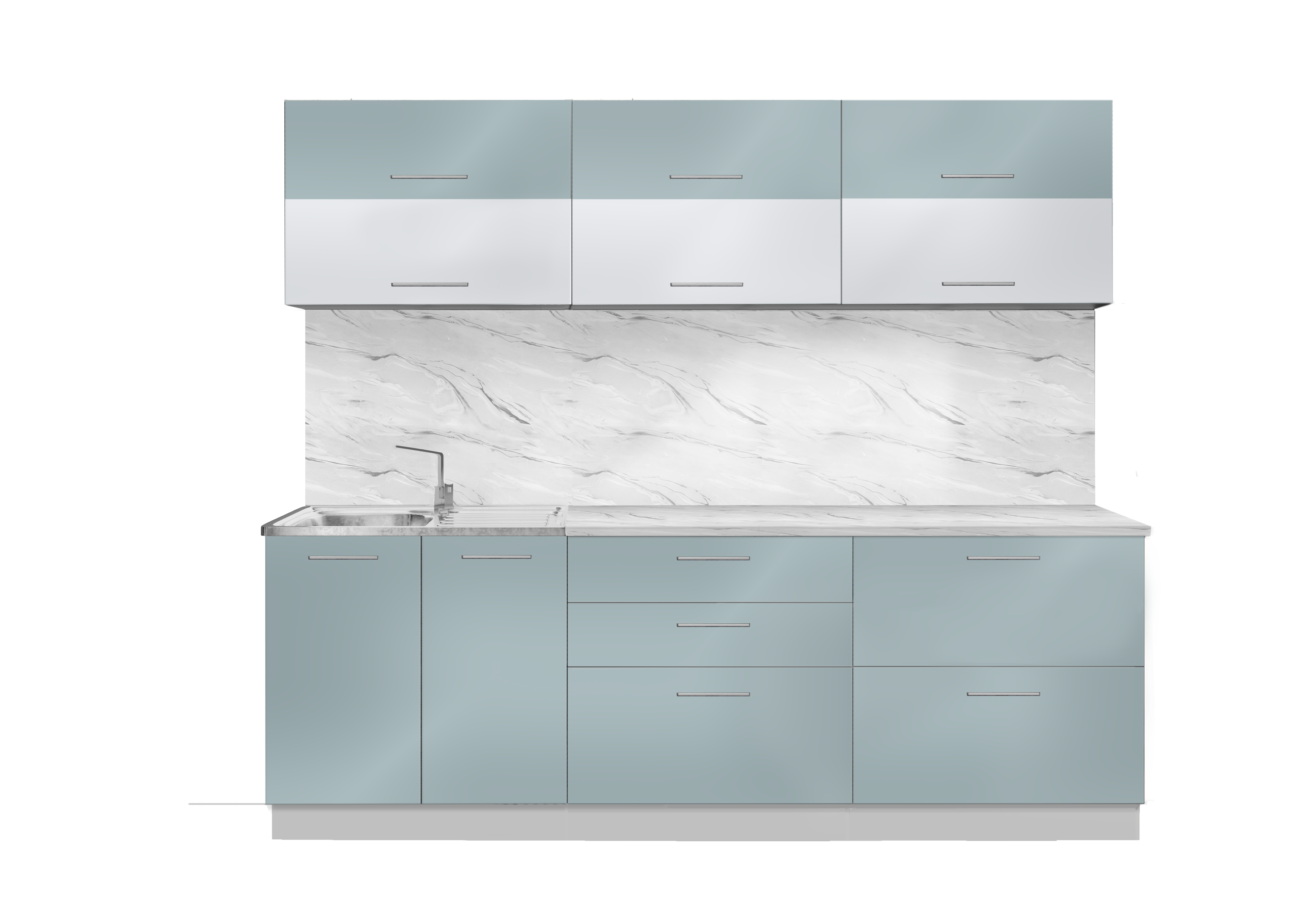 Линейная кухня «Яна» 2.4 м в расцветке белый алмаз/небесная лазурь также доступна в других размерах: