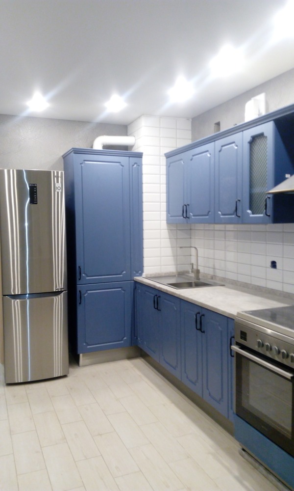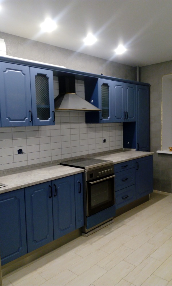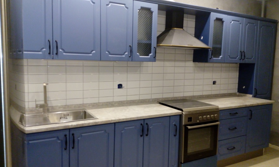 Современная кухня из МДФ. Удлиненные верхние шкафы.