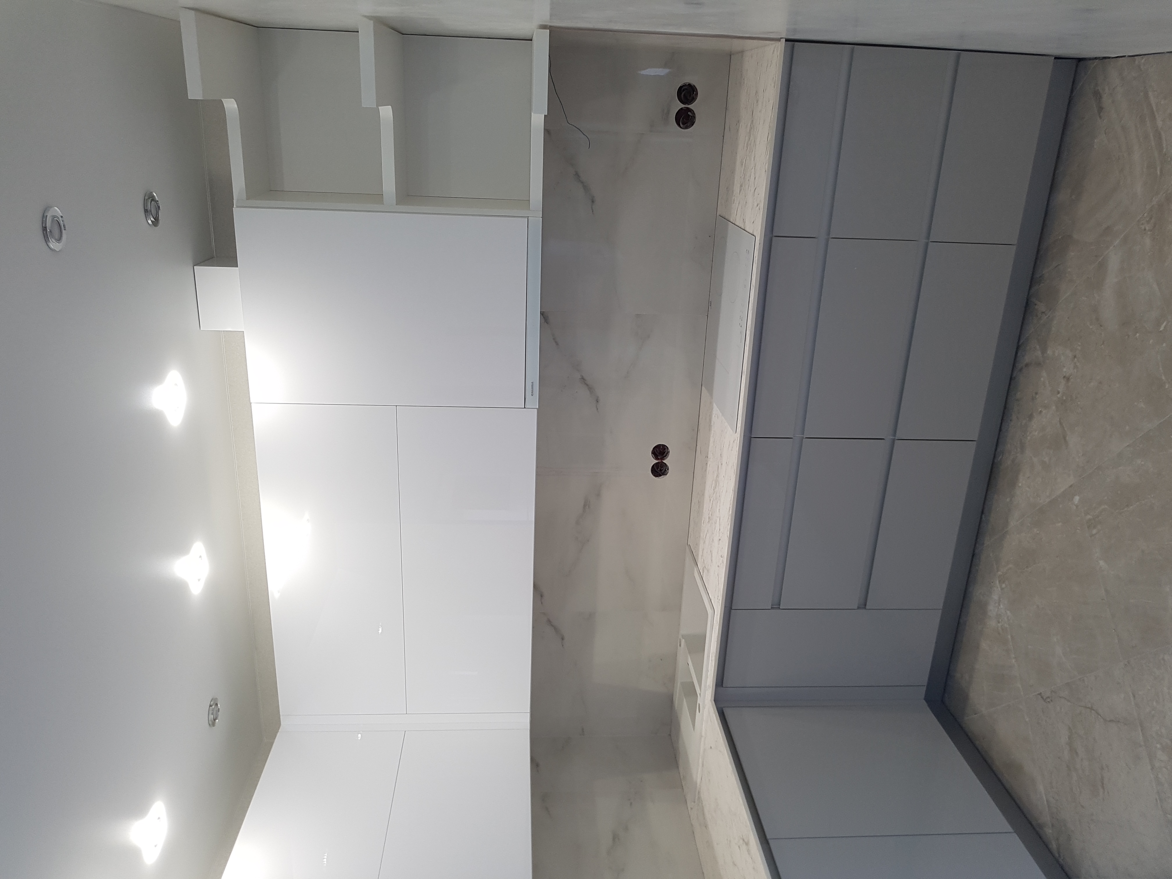 Минималистичные матовые фасады в белом цвете без ручек.