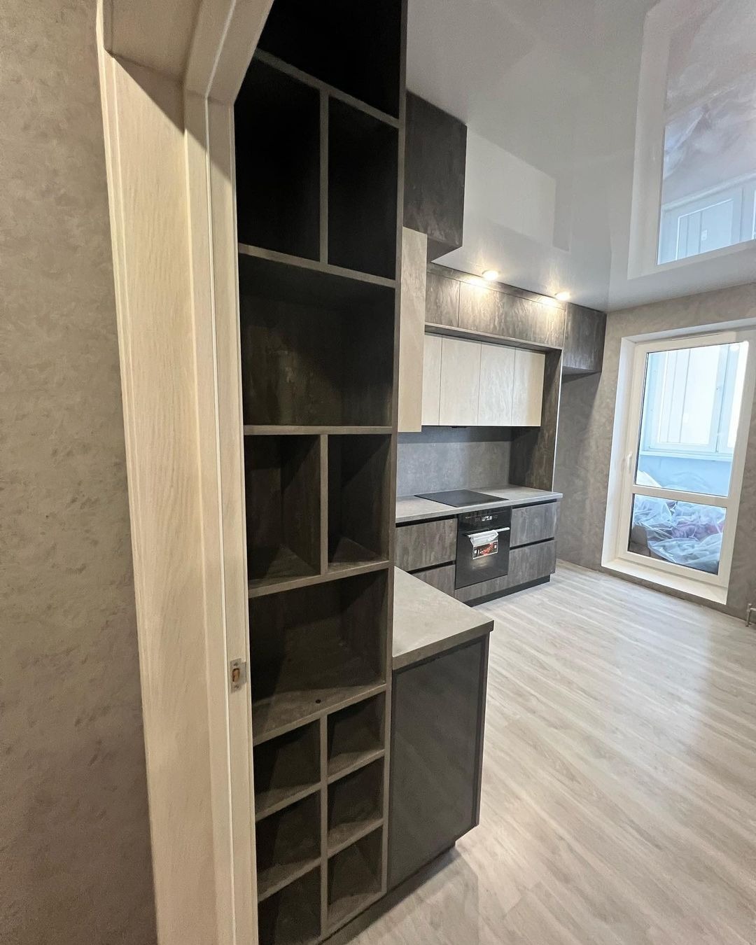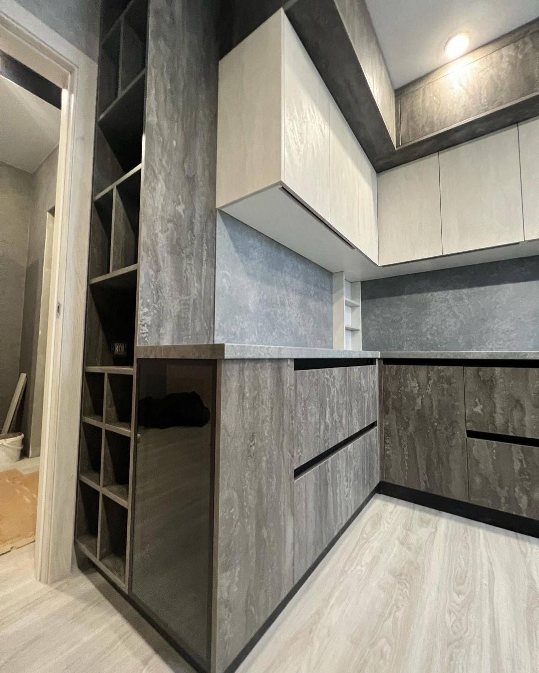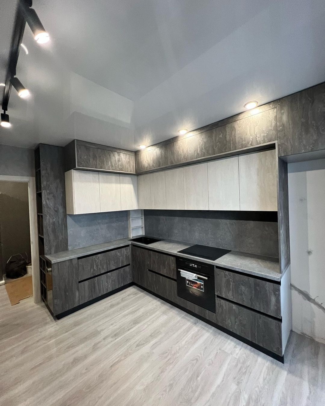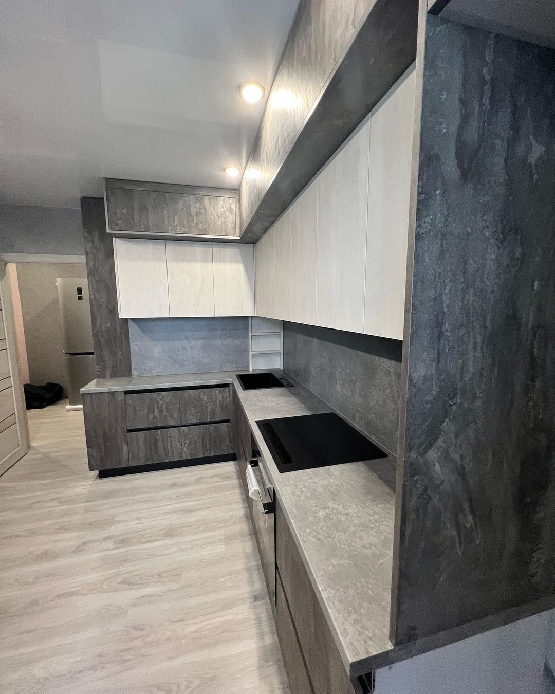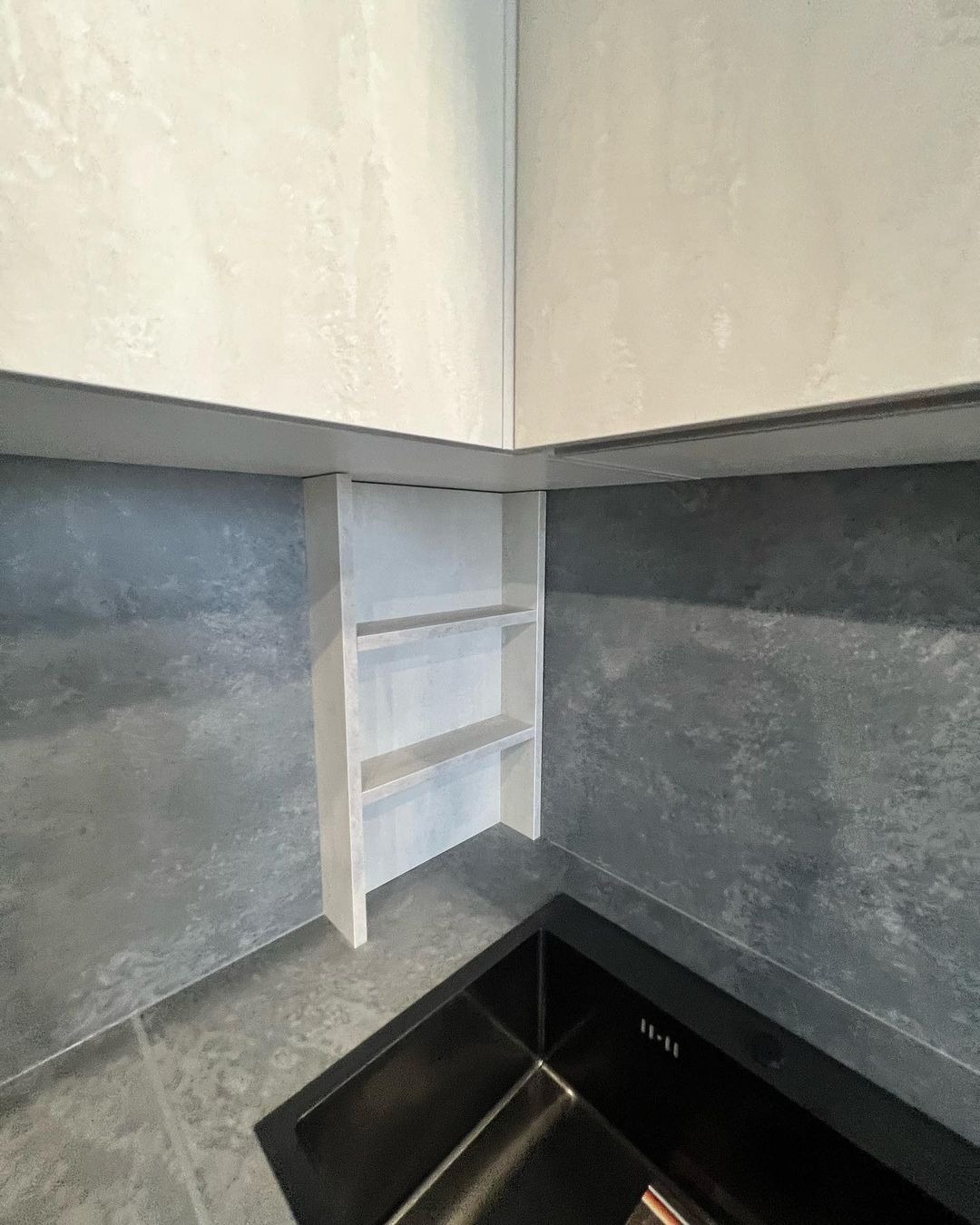 Фасад: железный и шелковый камень. Фурнитура Blum и Boyard.