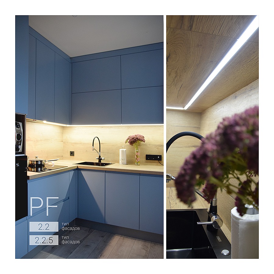 Стильный и современный дизайн. Фасады без ручек. Подсветка.