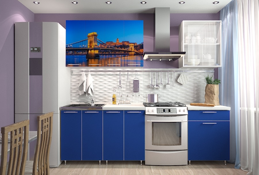 Материал фасада и корпуса: ЛДСП 16 мм. Ширина кухни 250 см.