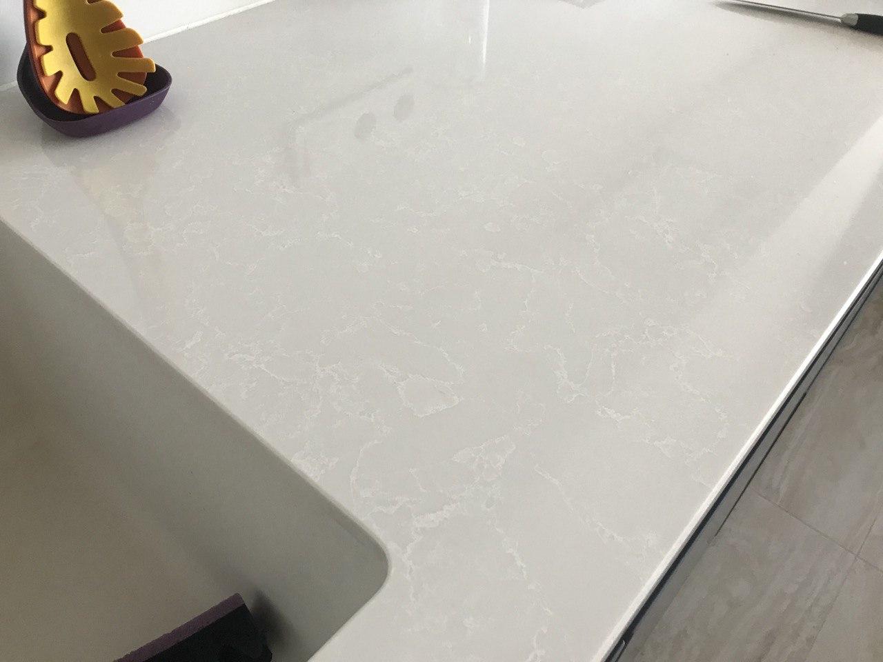 Удобные металлические ручки в цвете «сатин». Ширина кухни 240 см.