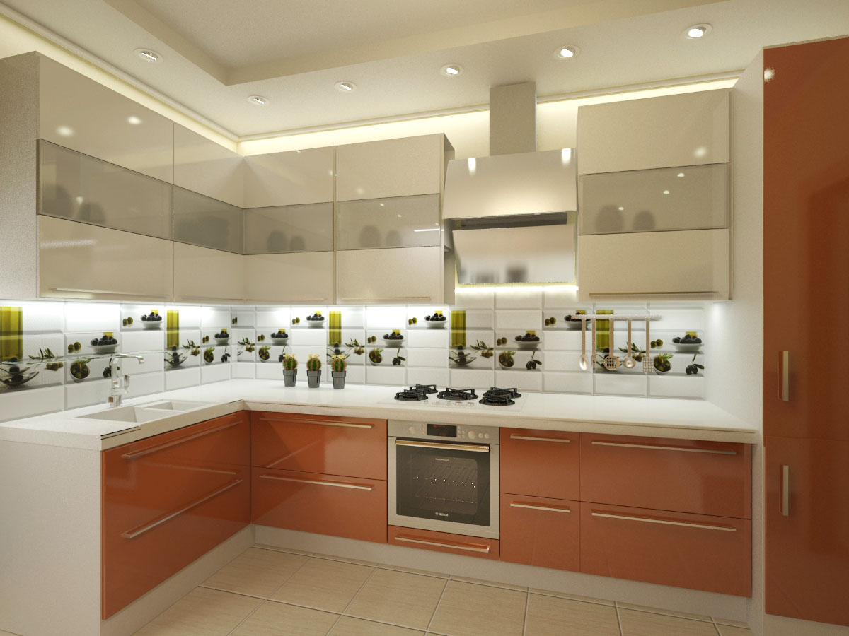 Функциональная минималистичная кухня с островом. Фасады без ручек из пластика.