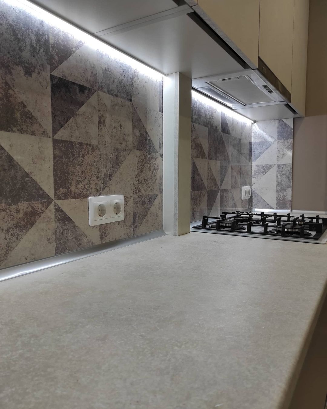 Большая угловая кухня в бежевом цвете