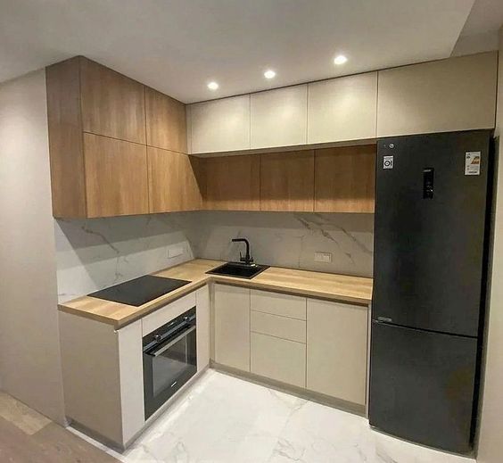 Габаритная угловая кухня с модулем для встраиваемой техники