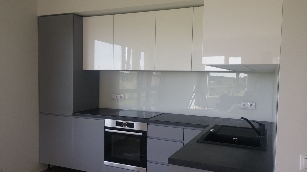Гарнитур с белым корпусом и серыми фасадами. Пр-во: Беларусь.