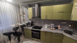 Фасады без ручек, ниши для техники, обеденная стойка.