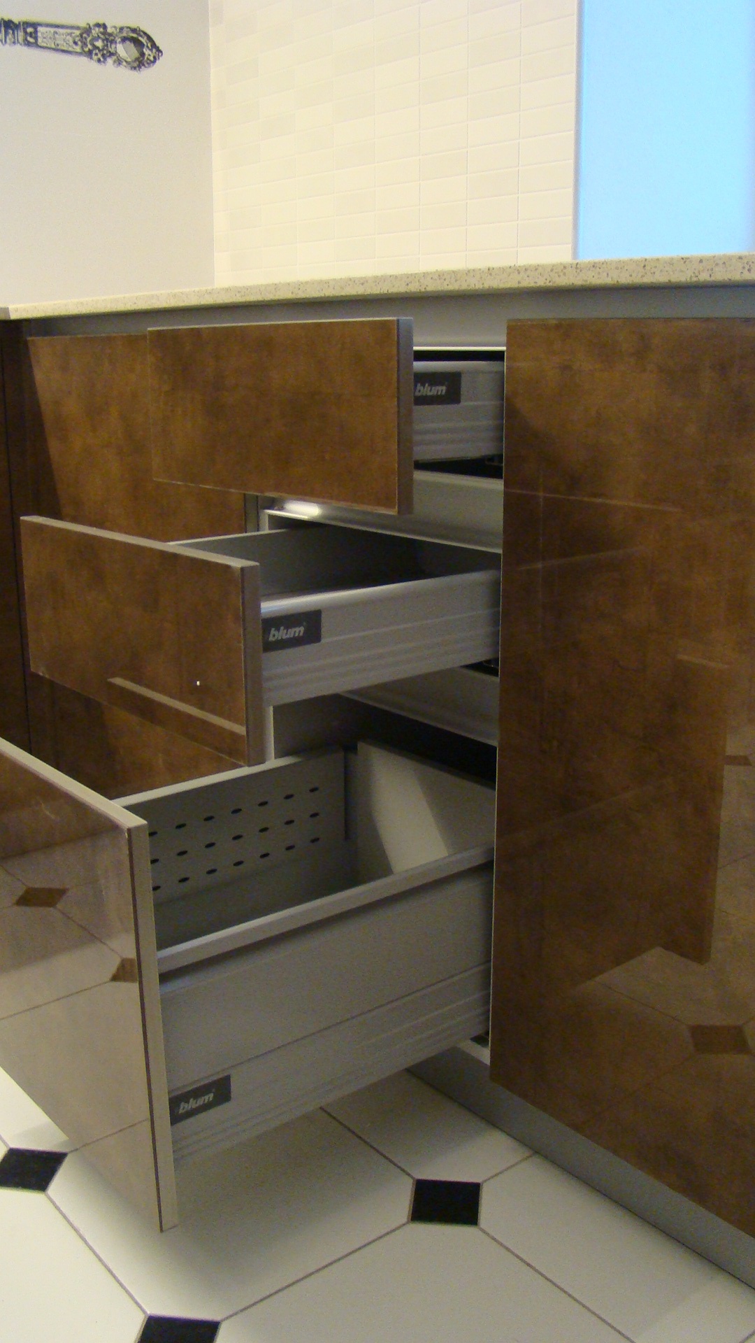 Цветовое исполнение фасадов: береза выбеленная и береза темная - хорошо передает текстуру дерева.