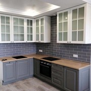 код 25710Стильное сочетание цветов: белые и фиолетовые фасады. Угловое расположение.