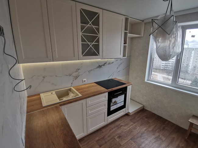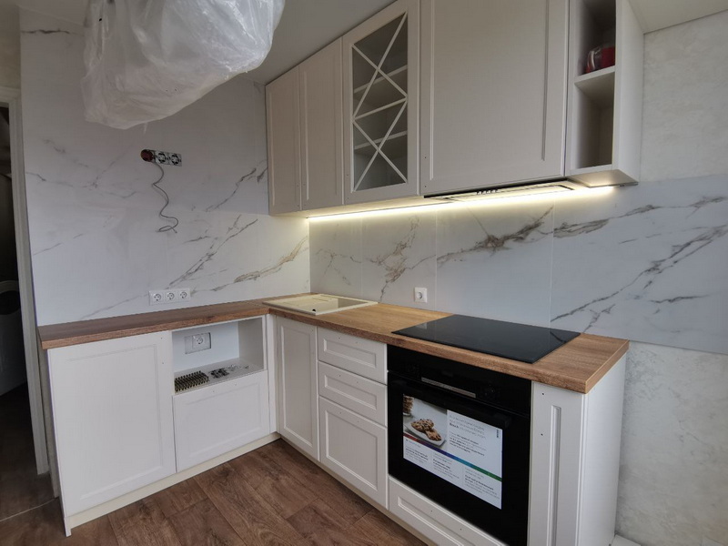 Материал фасада и корпуса: ЛДСП 16 мм. Ширина кухни 110 см.