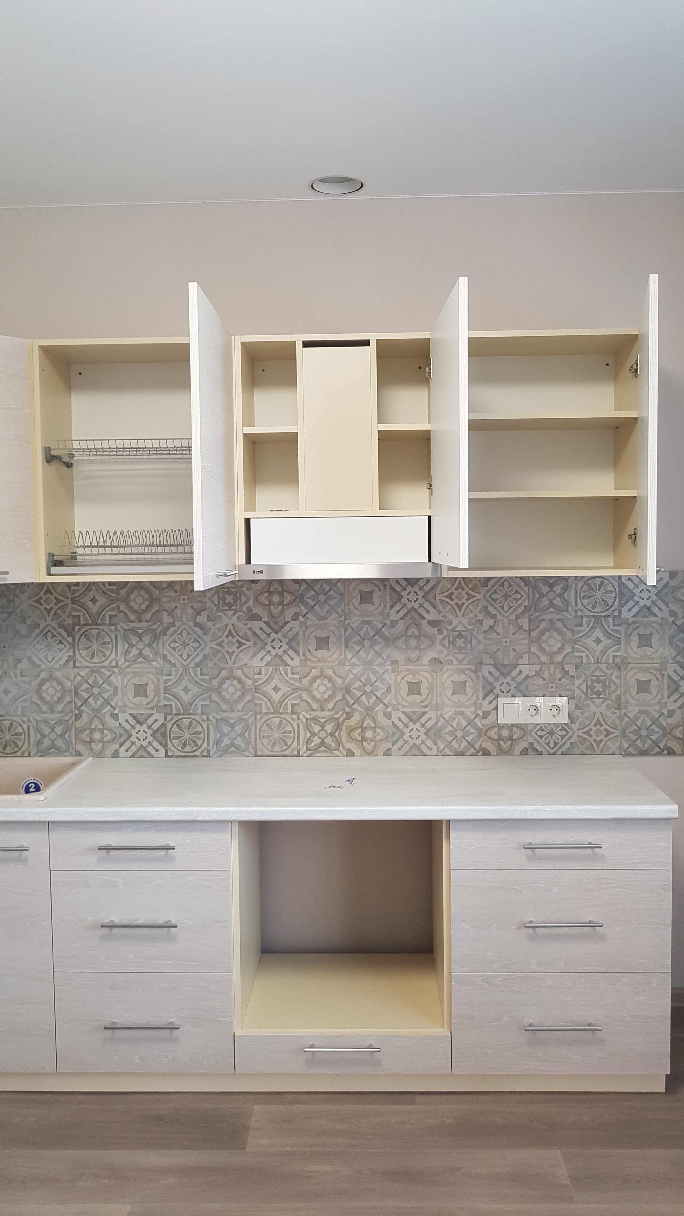 Фасады без ручек, ниши для техники, стильный дизайн. Фурнитура BLUM.