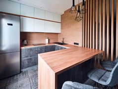 Длина кухни: 3.4х1.4 м. Материал фасада: пластик.