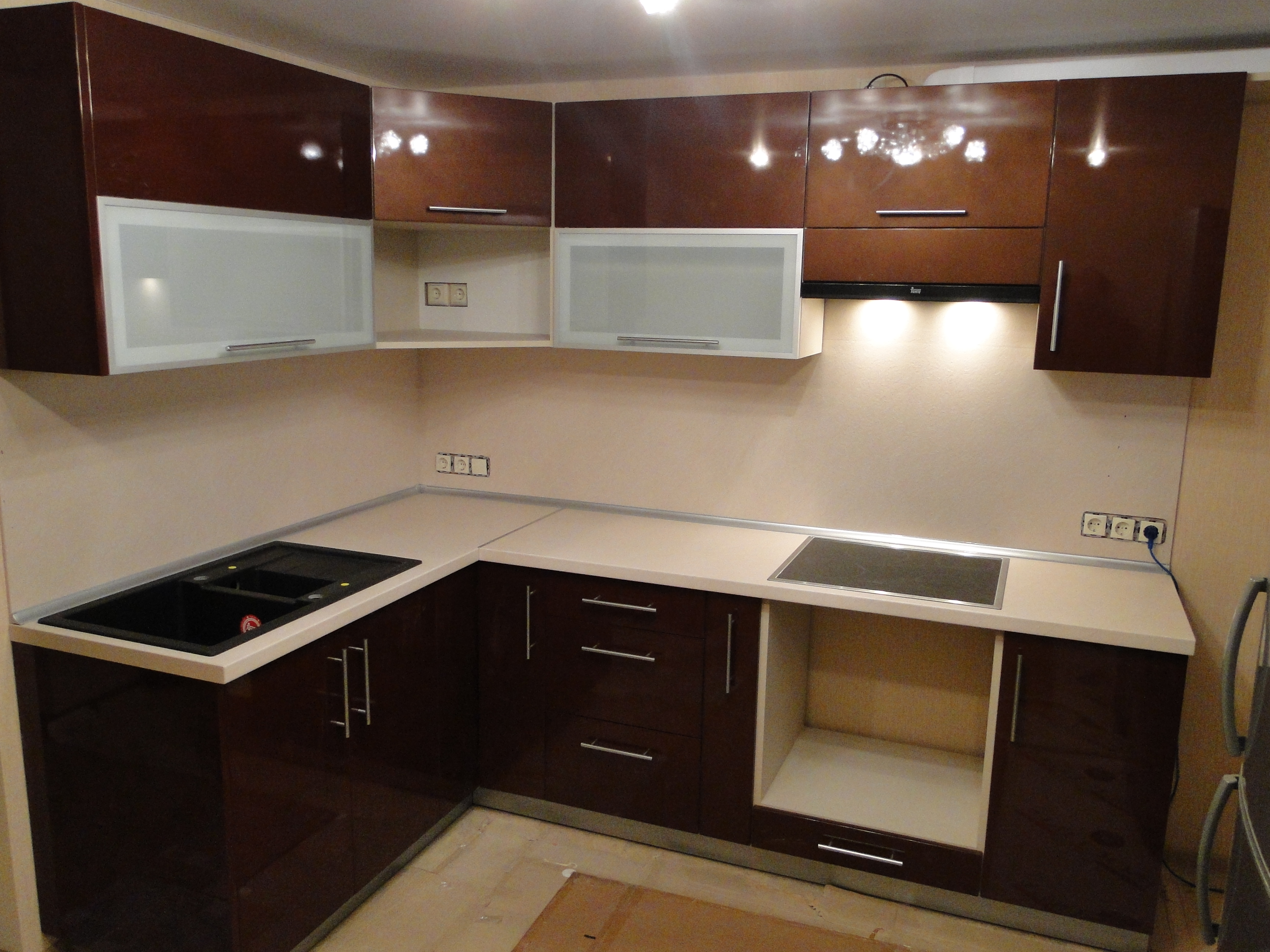 код 86608Остекление: лакомат. Фасад: коричневый. Кремовая матовая столешница.